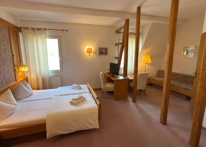 Las 13 habitaciones del Hotel "Zur Schoenen Aussicht" incluyen zona de estar. Algunas de las habitaciones disponen de un diseño cómodo con escritorio. Incluyen un inodoro separado y ducha en los baños.